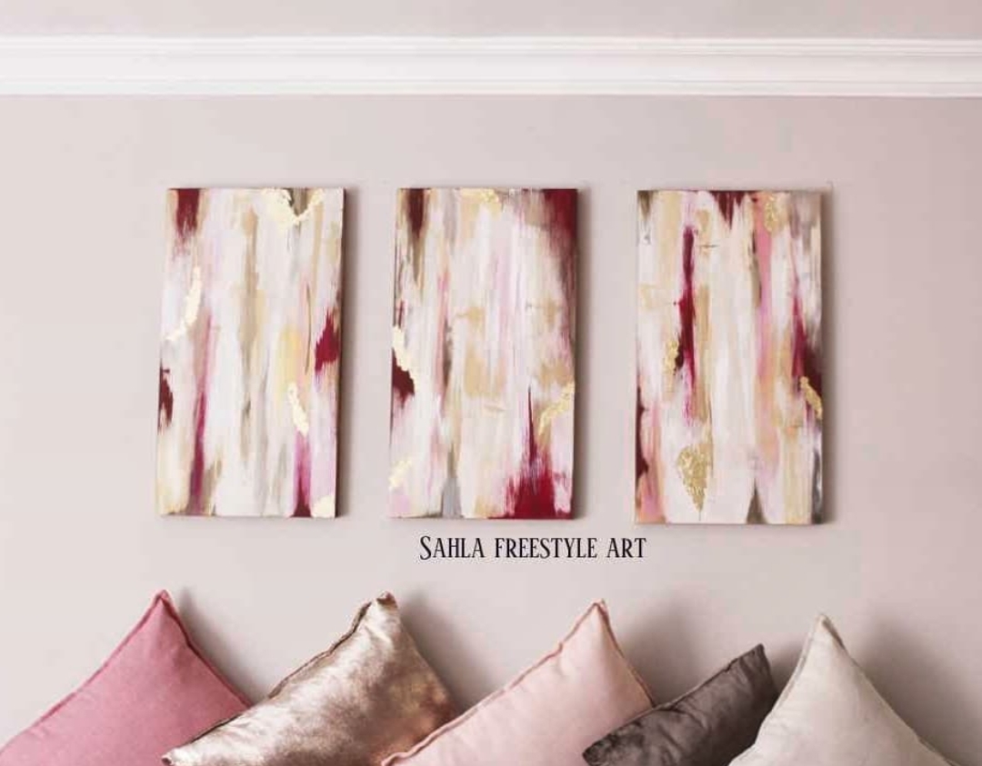 Vanilla with deep magenta piercing its subtlety fading into soft pink with burnt umber making more contrasting appearances. Ended this piece with gold leaf tears playing on its appearance.