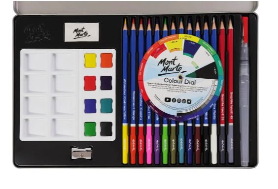 Let your creativity flow with our Signature Watercolour Collection. It comes with a range of watercolour essentials including pencils, paints and a water brush!